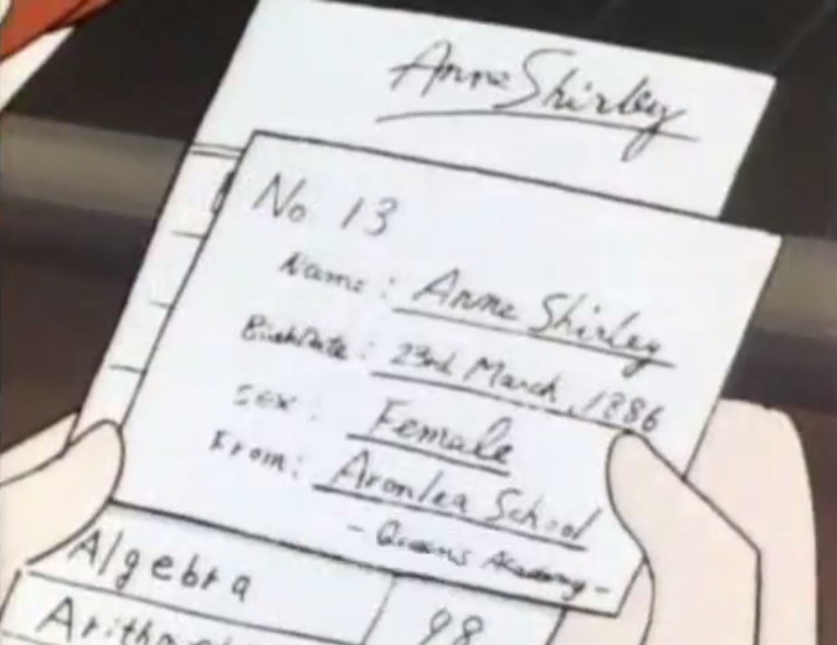 Notably, in the 1979 Japanese anime adaptation Akage no An,these scenes with Diana are all retained, the content of this specific chapter taking place across two separate episodes (38: “My Number is 13” and 39: “The Results”). This is perhaps not surprising given this production takes over 20 hours (across 50 episodes) to explore the narrative of Anne of Green Gables. Nevertheless, the extra breathing room this adaptation encourages allows us to see more of Anne before she heads to Queen’s, with a special focus on the anxiety she feels around her exam number: “I am not superstitious and I know it can make no difference. But still I wish it wasn’t thirteen.”