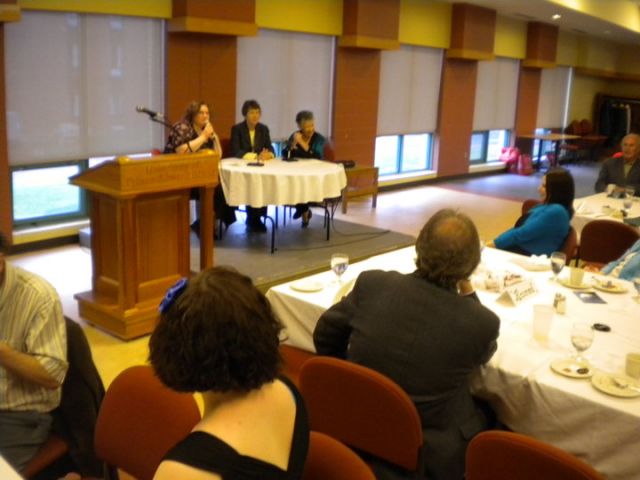 The 4th Biennial Conference, L.M. Montgomery & Popular Culture featured more than 40 presenters whose presentations ranged from scholarly papers to personal reflections. Keynote speakers included,  L.M. Montgomery’s granddaughter, Kate Macdonald Butler, Juliet McMaster's "Imagining it Away: Hair Red, Black, and Nut-Brown," and Edie Zakem's magnificent hand-sewn quilt demonstrated her meticulous research in choosing the images that would best reflect Montgomery's writing and life. Collector Ron Cohen discussed Montgomery's books as artifacts.