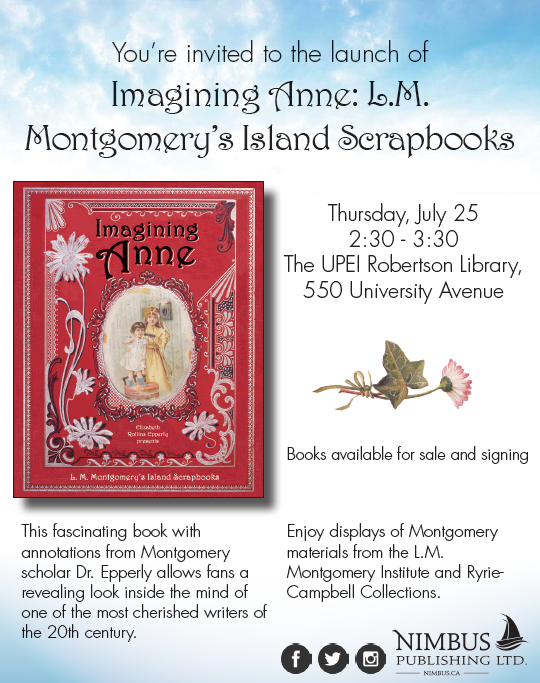 Imagining Anne: The Island Scrapbooks of L.M. Montgomery will be launched on July 25th, 2019, at 2:30-3:30 in the Robertson Library at UPEI. All are welcome!