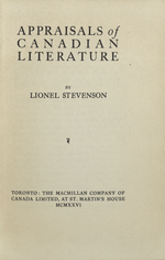 Appraisals of Canadian Literature