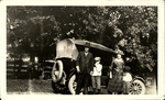 - A photo of the MacDonald family (Ewan, L.M., Chester, and Stuart) standing outside of their vehicle with a note on the verso in L.M. Montgomery's writing reading "The Mac family starting for Muskoka." This photo was donated as part of a collection of items from George Boyd Macmillan's family. George Boyd MacMillan (1881-1953) was a Scottish journalist and writer, and a favourite correspondent of L.M. Montgomery. The two were first introduced, by letter, in 1903, through an American writer who was developing a circle of literary pen friends. Although Montgomery and MacMillan only met briefly in-person, during her 1911 honeymoon in Scotland, their voluminous exchange of letters, postcards, and gifts continued until late 1941, just months before Montgomery's death., L.M. (Lucy Maud) Montgomery., The MacDonald family left for Bala, Ontario on July 24, 1922. Bala is a small resort town situated on Lake Muskoka. It is possible that this photo was taken then., L.M. Montgomery Institute. Ryrie-Campbell Collection., Donated by Donna Jane Campbell.