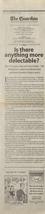 - An article discussing the 40th anniversary of the "Anne of Green Gables" musical created by Norman Campbell, Donald, Harron, Elaine Campbell, and Mavor Moore and the fact that Japanese Princess Takamado will be attending that night's show., L.M. Montgomery Institute. Ryrie-Campbell Collection. Stage and Screen., Donated by Donna Jane Campbell.